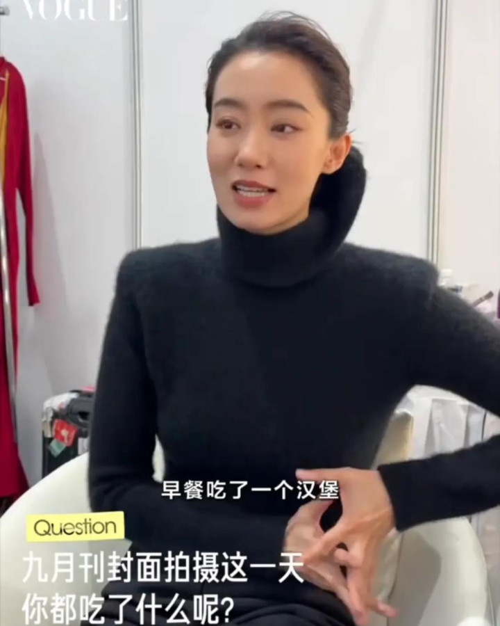 刘亦菲为了来拍照,早上只喝了果汁,吃了沙拉,她说自己喜欢吃肉。难怪总看到刘亦菲去吃火锅,而且她身材圆润,大口吃肉的女人就是看着气色很好。