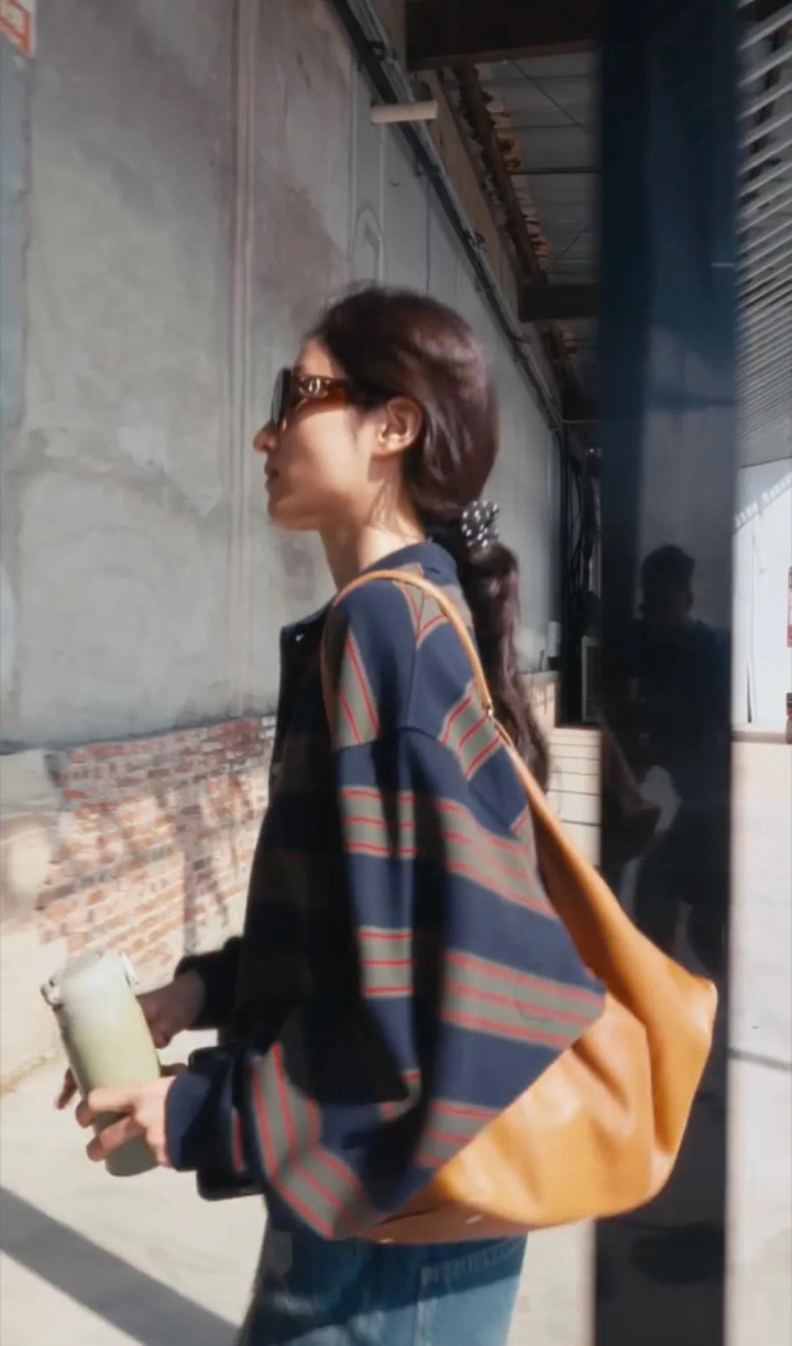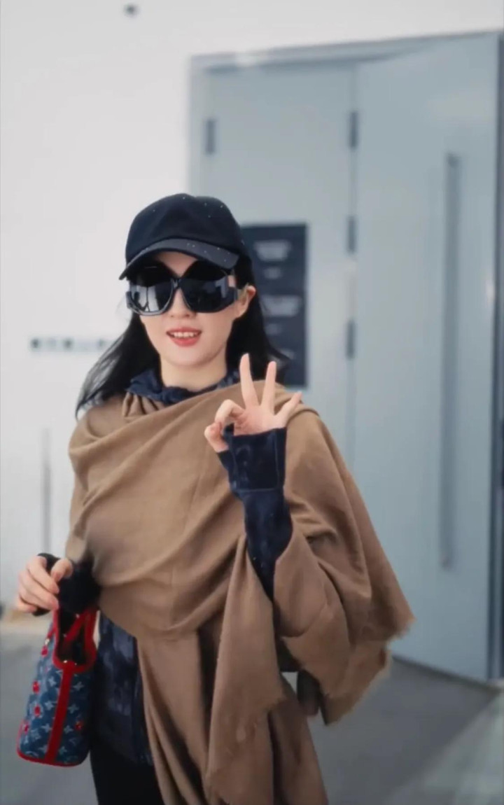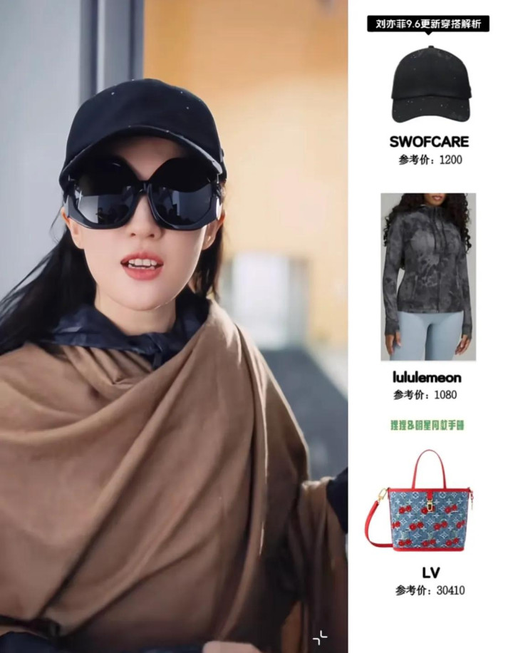 刘亦菲拿着LV新款的樱桃包来到拍摄现场,这款包价值三万多块,颜色艳丽,很适合刘亦菲。刘亦菲穿着Lululemon的运动装,披着一件羊毛披肩,她戴着夸张的黑色墨镜进屋,她的“偷感”很重,真是个可爱的女人。