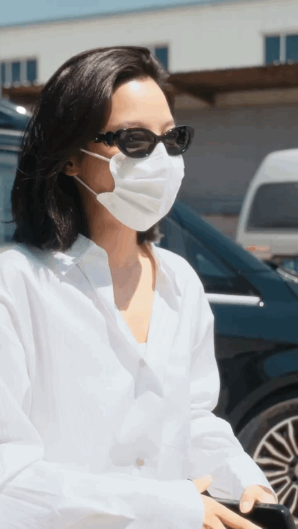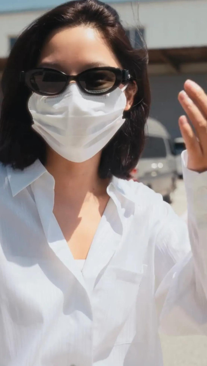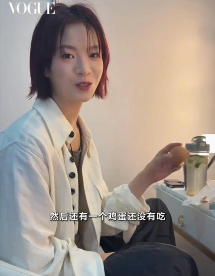 李庚希穿着亚麻衬衣和黑色短裤,她的腿很纤细,身材真好。李庚希贴着面膜就来了,这两片贴在脸颊上的面膜让她看起来像小猫咪。李庚希这一天只吃两个鸡蛋,太不容易了,她满脸的委屈。