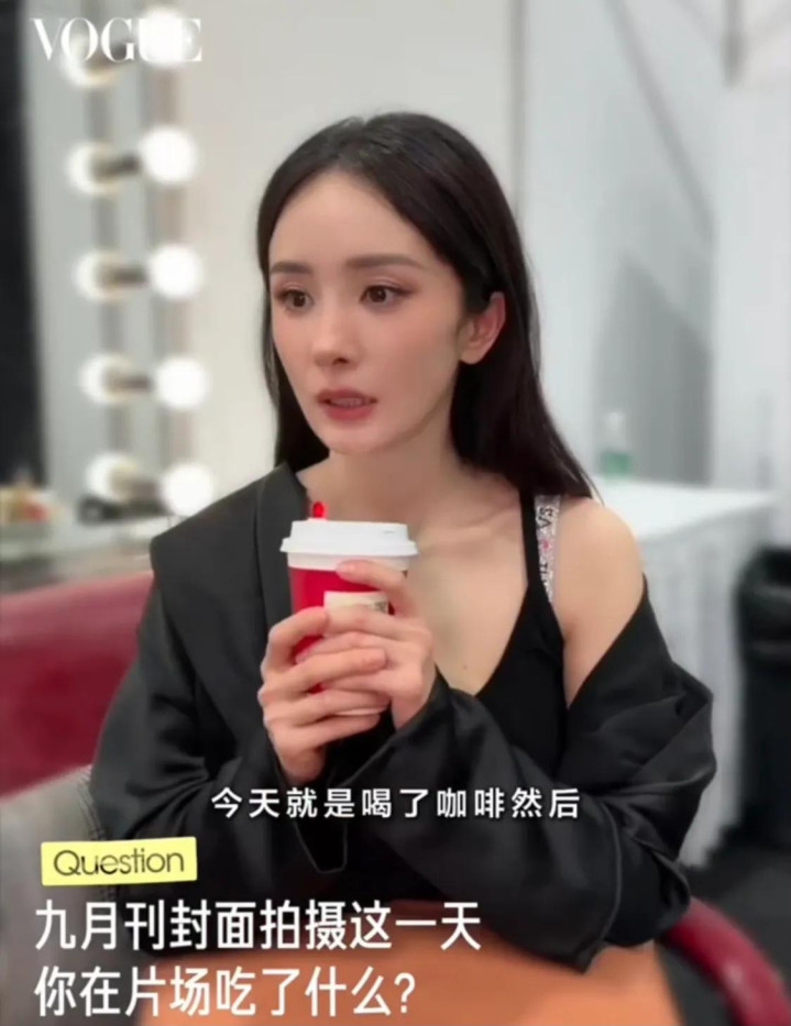 杨幂手拿一杯咖啡来上班,她身上穿着维多利亚秘密的刺绣睡衣。穿着睡衣就来上班了,杨幂也太松弛了。杨幂早上只喝了咖啡和燕麦粥,吃的很健康。