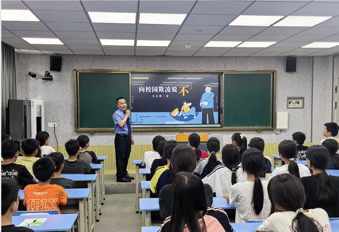 为进一步增强青少年法治意识和自我保护意识,营造良好的法治校园氛围,筑牢校园安全防线。9月16日,惠来县检察院副检察长庄景处以惠来县溪西中学法治副校长的身份走进校园,以“法治护航青春 共建平安校园”为主题,为同学们带来了一堂主题鲜明、内容深刻的校园欺凌防治法治课。