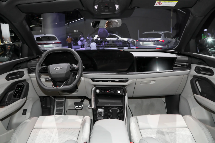 内饰方面,奥迪Q5L目前还没有明显的舱内调整。在带有触控的平底三辐式方向盘前端,车辆依旧采用了一体式曲面结构打造的11.9+14.5英寸双液晶屏,这种OLED曲面屏能够更集中地展示实时车况与路况信息,并优化中控位置的触控操作便捷度。同时,车辆还会增加HUD抬头显示来优化信息读取,更直观地读取方式也能在一定程度上避免因视野偏转导致的安全风险。不过,奥迪的HUD在实用性方面稍有欠缺,它无法像国内的那些AR-HUD那样提供多全面的实时路况导航提示,而仅仅是作为辅助读数显示。