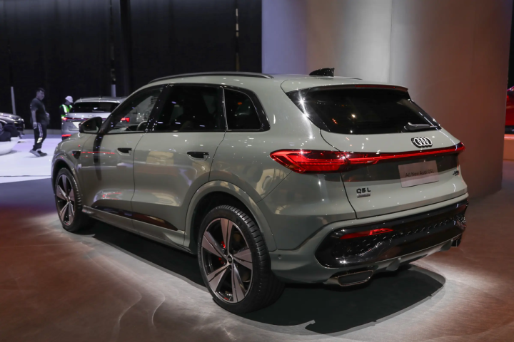 同时,从轮眉到后保险杠,车辆也采用了比较完整的底盘运动包围。只不过,像侧裙等独立包围处置都采用了与车身同色的涂装方式;而黑色涂装则用在了外后视镜、防刮蹭条以及车窗线等区域。由此形成的撞色其实会更加分明,也避免了过度夸张,毕竟奥迪Q5L还是需要兼顾中年主力消费群体的产品。