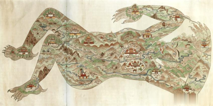 相传,公元7世纪文成公主远嫁吐蕃国王松赞干布,一路艰辛,初到雪域西藏时,公主就用中原汉地的《八十种五行算观察法》,堪舆和推算出了西藏的地形地貌,犹如一个仰卧的罗刹女魔形状。